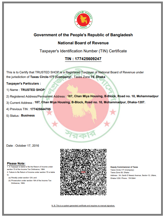ট্যাক্স আইডেন্টিফিকেশন নম্বর।